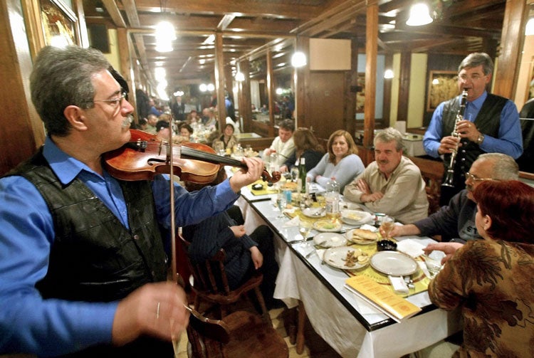Most of the tourist beds are in an apartment building, Konaci, whose design is incredibly based on the defensible monasteries of medieval Serbia. The Konaci has a sort of mock-Tudor look about it, thanks to the dark, wooden beams and white rendering. The complex faades step forward and back, up and down; and dormer windows above pierce the steeply pitched, wood-shingled roofs. There is a post-modern lunacy about the whole ensemble, most of all where an octagonal watchtower suddenly bursts into the skyline.