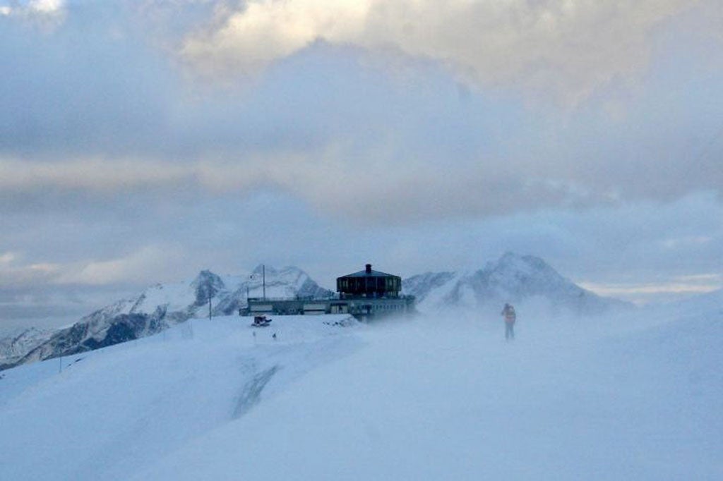 The snow showed no sign of relenting the next day, but a limited number of lifts were now open, which finally gave ski instructor Robert (from Essex, did I mention?) the chance to put me through my paces on the mountain. The Alpine Express gondola runs from the village to the station at Morenia and then onwards to the 3,000m mark at Felskin. However, for most people the "daily commute", as Robert called it, is via the bright red Felskin cable car. That morning it was packed with skiers, lots of them British, many of them family groups, and all of them anxious to make up for lost time. We bundled out at Felskin's subterranean concrete terminus, where tunnels guide skiers out on to the slopes or on to the extraordinary underground funicular which runs up the final 500m to the Allalin glacier, its rasping white-blue surface just visible beyond the billowing snow. Climbing the stairs at the top, the air is noticeably thin: you gasp for breath.