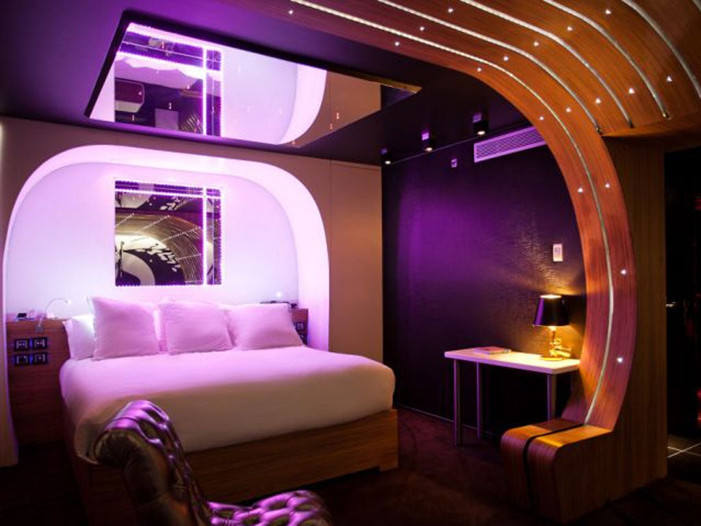 For the ultimate Bond-style bachelor pad, check into the 007 Suite, which oozes masculine muscle with lamps shaped like golden guns, Bond girl graphics and louche LED lighting. Special agents will feel at home under the cool, curved roof, while gadget fans will love the steam-room function in the shower and the “endless” mirror above the bed. There’s also a Nespresso machine if you need a boost after battling baddies and Wi-Fi for touching base with M.