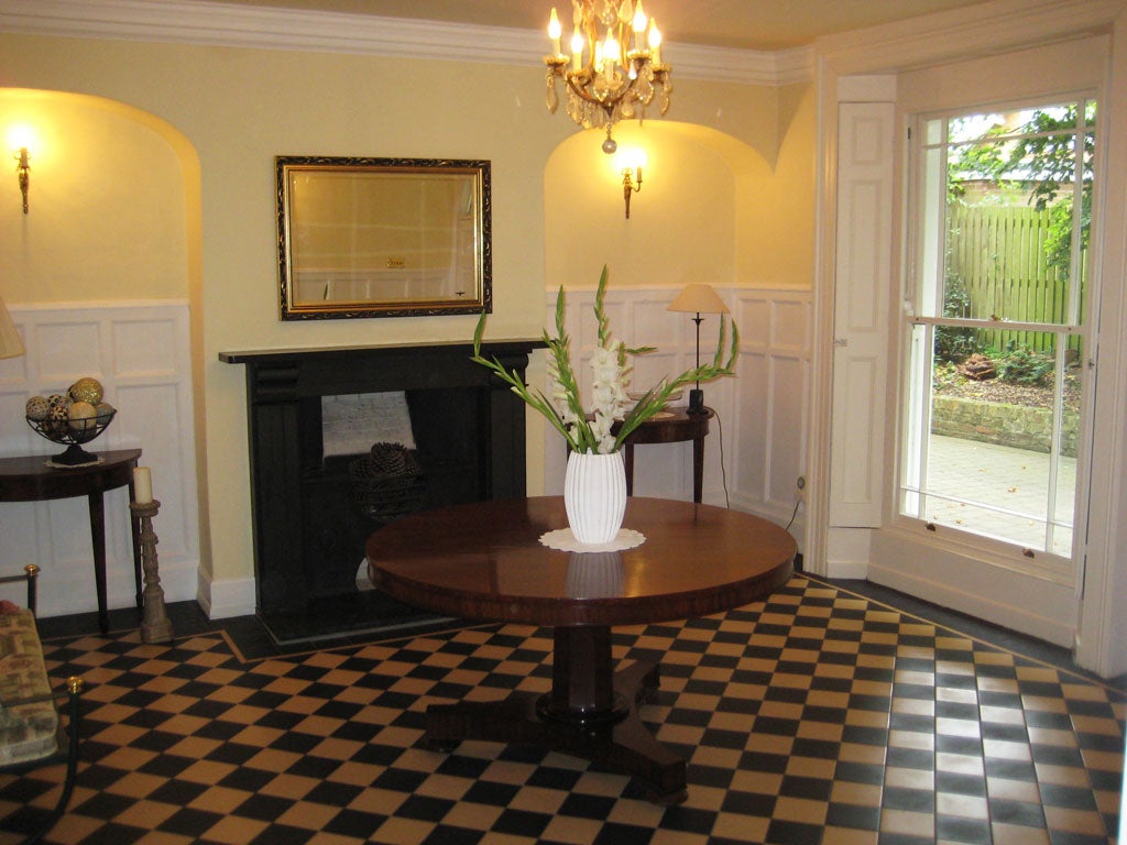 There are four rooms, prettily appointed in pale pastels. The largest, the Mulberry Room, has a view of its namesake, a rather fine mulberry tree. It's uncommonly roomy for a B&B, easily accommodating large polished wood wardrobes and dressing tables, and with elegant lemon and powder-blue furnishings, including heavy brocade curtains. Even these, however, cannot keep much warmth in – it's a chilly old Georgian building, so pack a jumper. Or just dive into the glorious sleigh bed; it enfolds you in a deep comforting embrace, with huge, squashy duvets and eiderdowns on top.