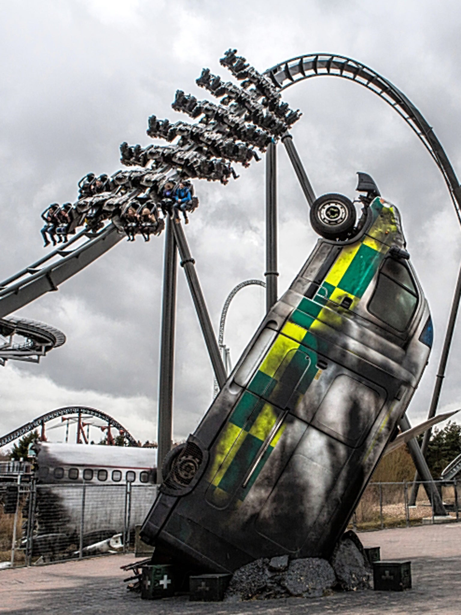 Thorpe Park’s (0871 663 1673; thorpepark.com; from £24.99) newest rollercoaster, The Swarm, has added two rows of backwards-facing seats to give the ride an extra stomach-churning dimension this year. The trains appear to travel through a crash scene, past an upturned ambulance and via destroyed billboards, corkscrews an inverted drop through a plane wing and zero-gravity roll.