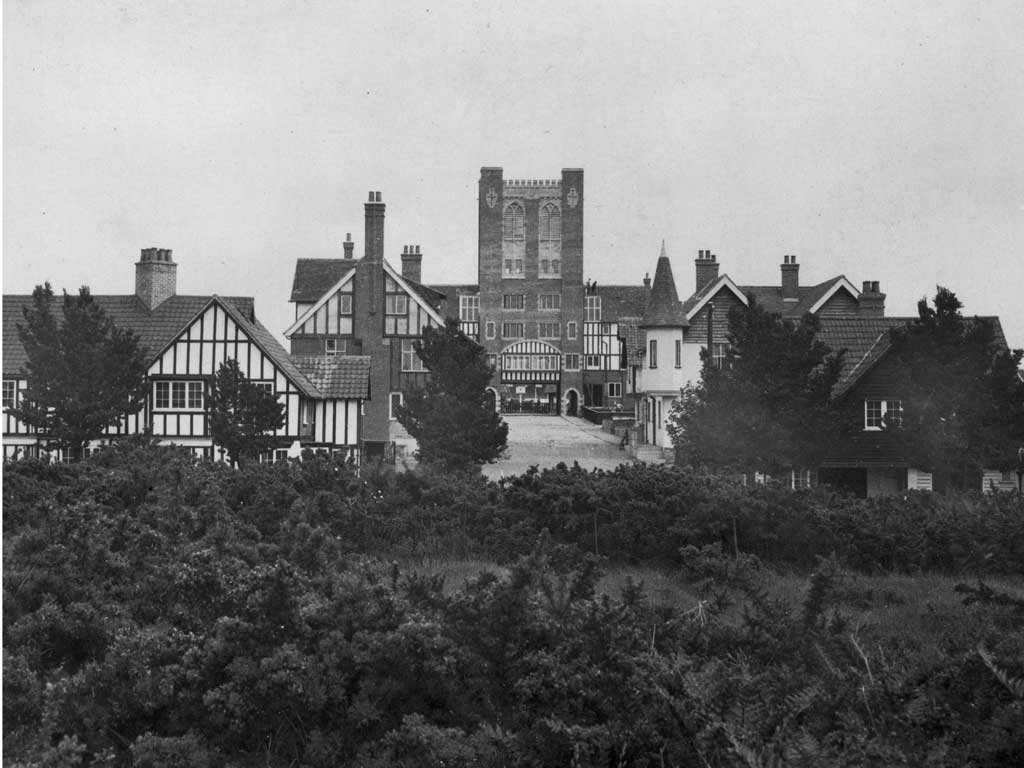 Ogilvie's idea was to create a village that would conjure up the spirit of Merrie England with its mock-Tudor and Jacobean-style buildings. In addition, he furnished it with everything the holidaymaker could desire for a wholesome break – a boating lake, tennis courts, a golf club and holiday lodgings, a green, a pub, a shop, and even a church.