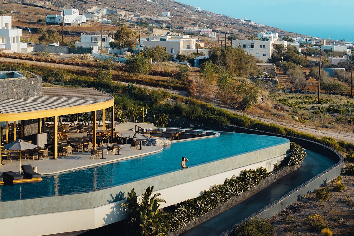 Folded into the island’s dramatic landscape, Magma Resort Santorini — part of the Unbound Collection by Hyatt — invites guests to a serene sanctuary away from the bustling crowds of the Caldera and just a 10-minute drive from Fira.