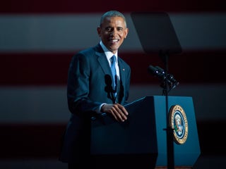 “Show up, dive in, stay at it,” he said during his farewell, as he readies to leave office far more popular than the President-elect. “Sometimes you’ll win, sometimes you’ll lose. Presuming a reservoir in goodness, that can be a risk. And there will be times when the process will disappoint you.