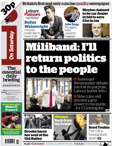 Today’s cover story, which you can find here, is an exclusive interview with the Labour leader Ed Miliband. Westminster politics, he admits, is a game watched “by a few hundred people in Westminster, but it doesn’t travel beyond Westminster”, the public having given up on “a bunch of blokes shouting at each other”.