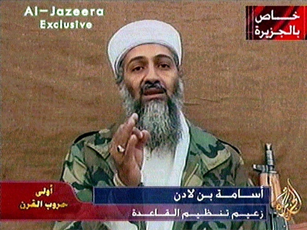 Two hours after US-led air strikes against Afghanistan begin, Al-Jazeera broadcasts a statement from Osama bin Laden, in which he describes former US President George Bush as the "head of the infidels" and says the US has declared war on Islam.