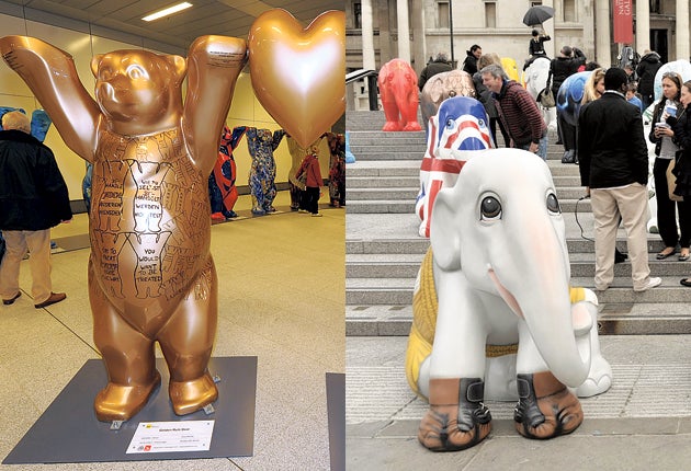 Two baby elephants have just appeared, guarding the Albert Memorial in Kensington; there is a colourful little coterie in front of Nelson's column, and another pair has materialised at Hyde Park Corner. They are among the 260 fibre glass elephants, painted and decorated, that comprise what is said to be the largest exhibition of outdoor art the city has ever hosted. It's not the first such event, though. London had a cow parade in 2002, as did Manchester two years later. And such parades have become set-pieces of the modern city, rather as annual marathon races have done.