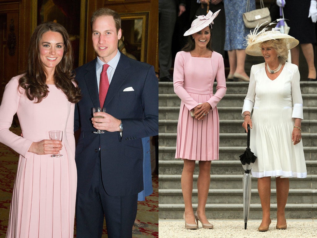 Kate has indeed been spotted wearing outfits on more than one occasion in the past - including a blue tweed M Missoni coat, an Emilia Wickstead pink dress, and nude court shoes from LK Bennett, as well as lending her mum a dress from Reiss (see gallery above).
