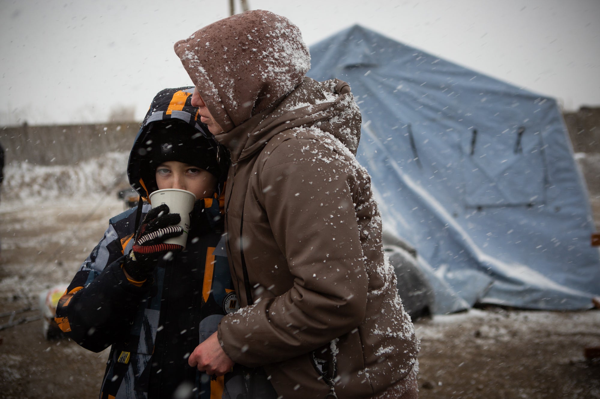 Many waited anxiously for news of relatives, friends, or distant acquaintances, still in line on the other side. Many held their children – or their pets – under blankets, shivering, trying to get warm.