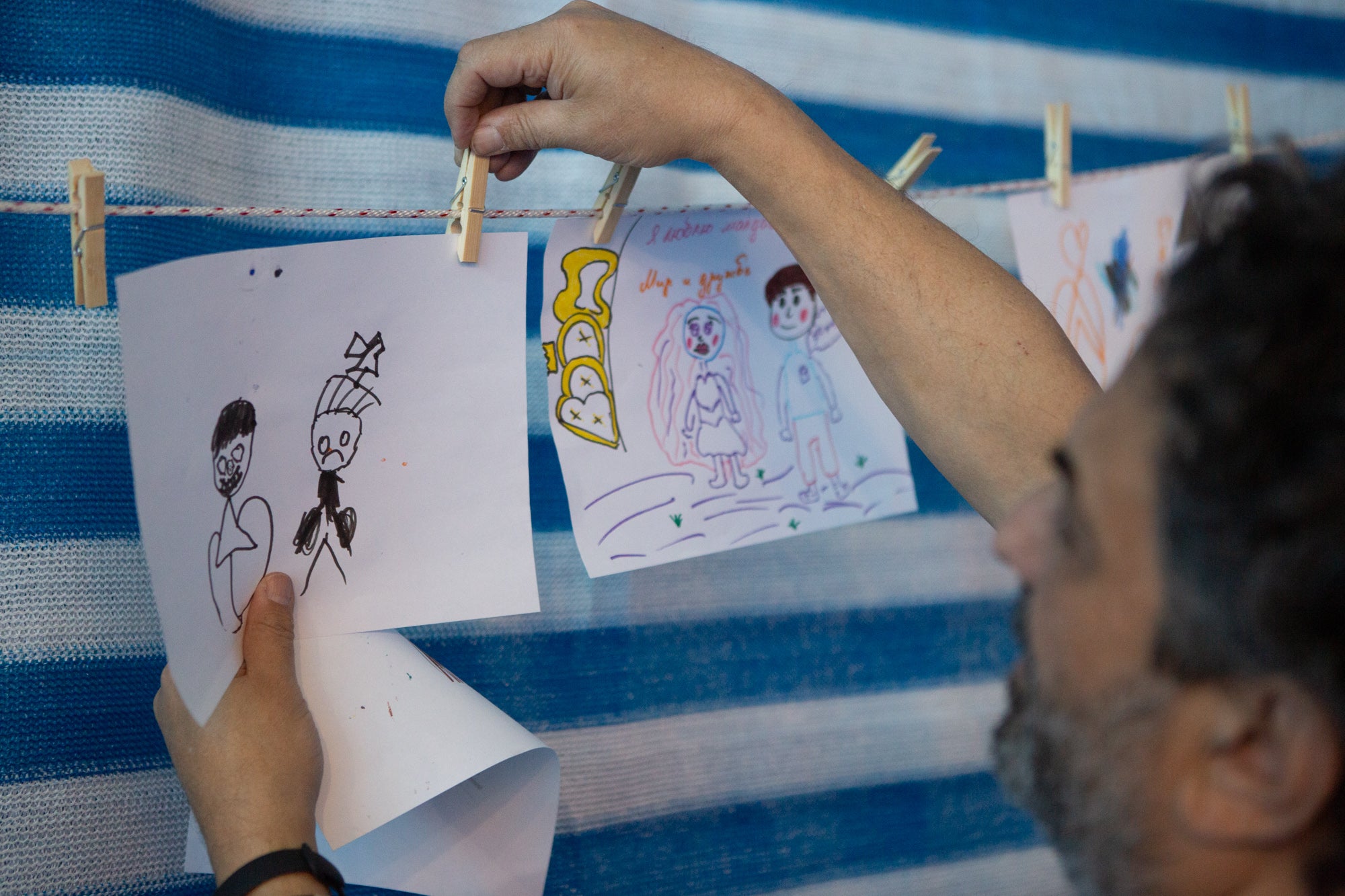 Some we met wanted to keep moving. Some just spoke about returning home. Others showed us videos of bombed-out buildings, their homes in ruin. Some wanted to help, offered to go around with us as we handed out blankets or information sheets with guidance on managing children’s stress in times of crisis.